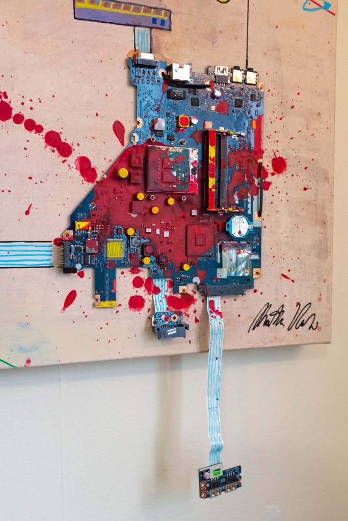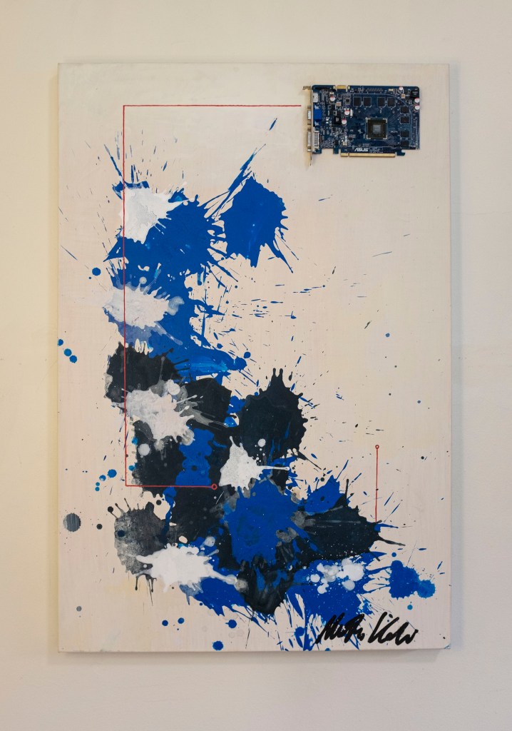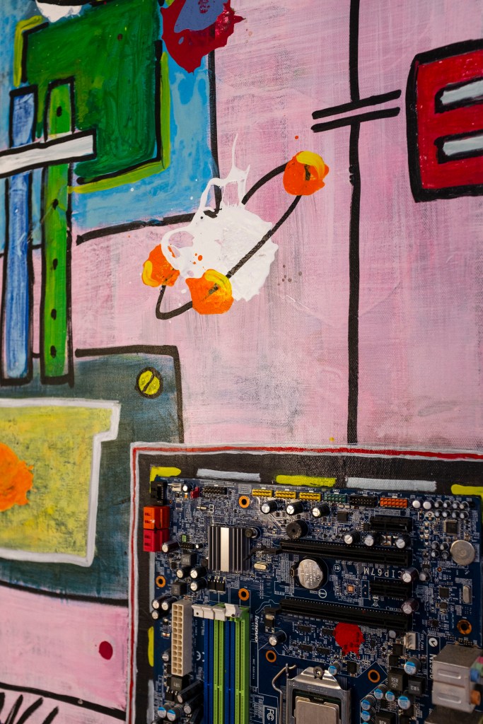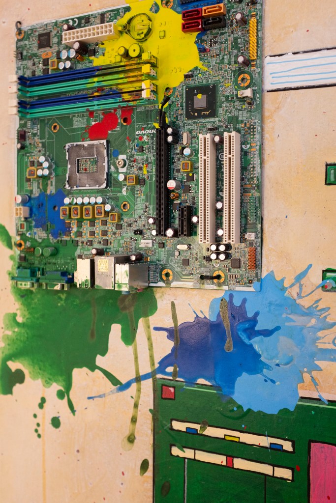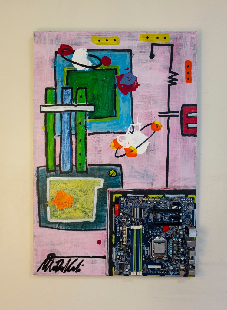 Acrylic on Canvas and applied motherboard. 50x75cm.