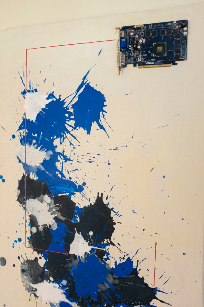 Acrylic on Canvas and applied motherboard. 55x95cm